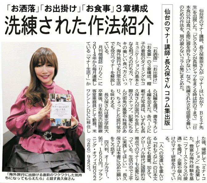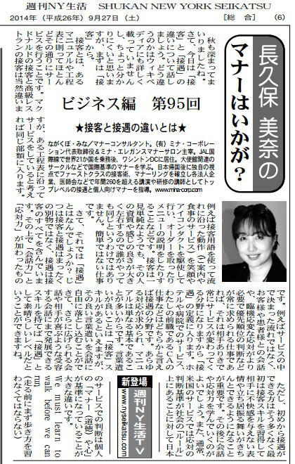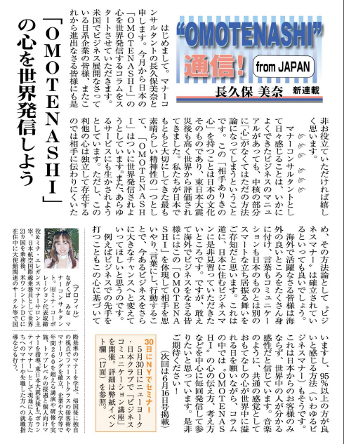 SHUKAN NEW YORK SEIKATSU に「マナーはいかが?」By ミナ先生 の書評が掲載されました!
